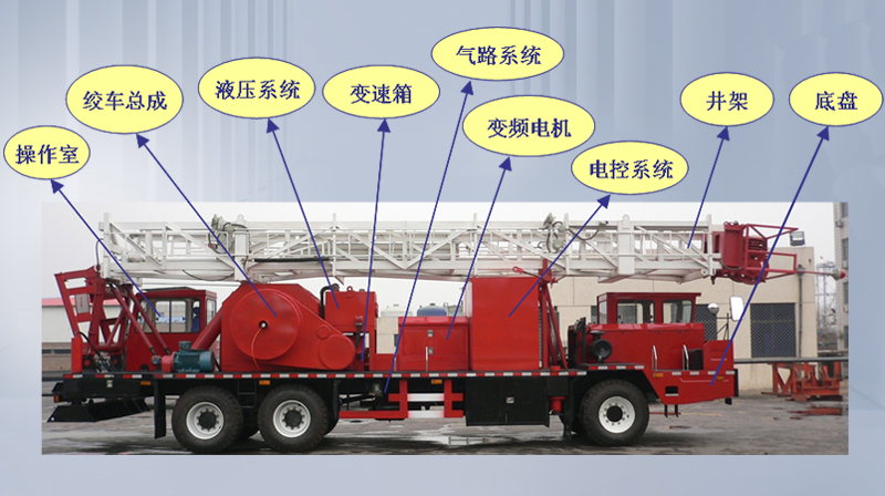 輪式網(wǎng)電修井機(jī)主要由修井機(jī)主機(jī)和箱變總成或增程式發(fā)電機(jī)組組成,用于油田井深范圍在4000m以內(nèi)的油、氣、水井等小修作業(yè)。產(chǎn)品包括XJ70DBZ型、XJ90DBZ型。